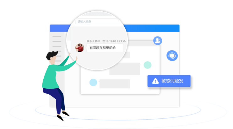 主管可查看員工和客戶的聊天內(nèi)容,并可以設(shè)置規(guī)則,對敏感行為 進行記錄,一旦發(fā)生敏感行為,主管可及時收到提醒。
